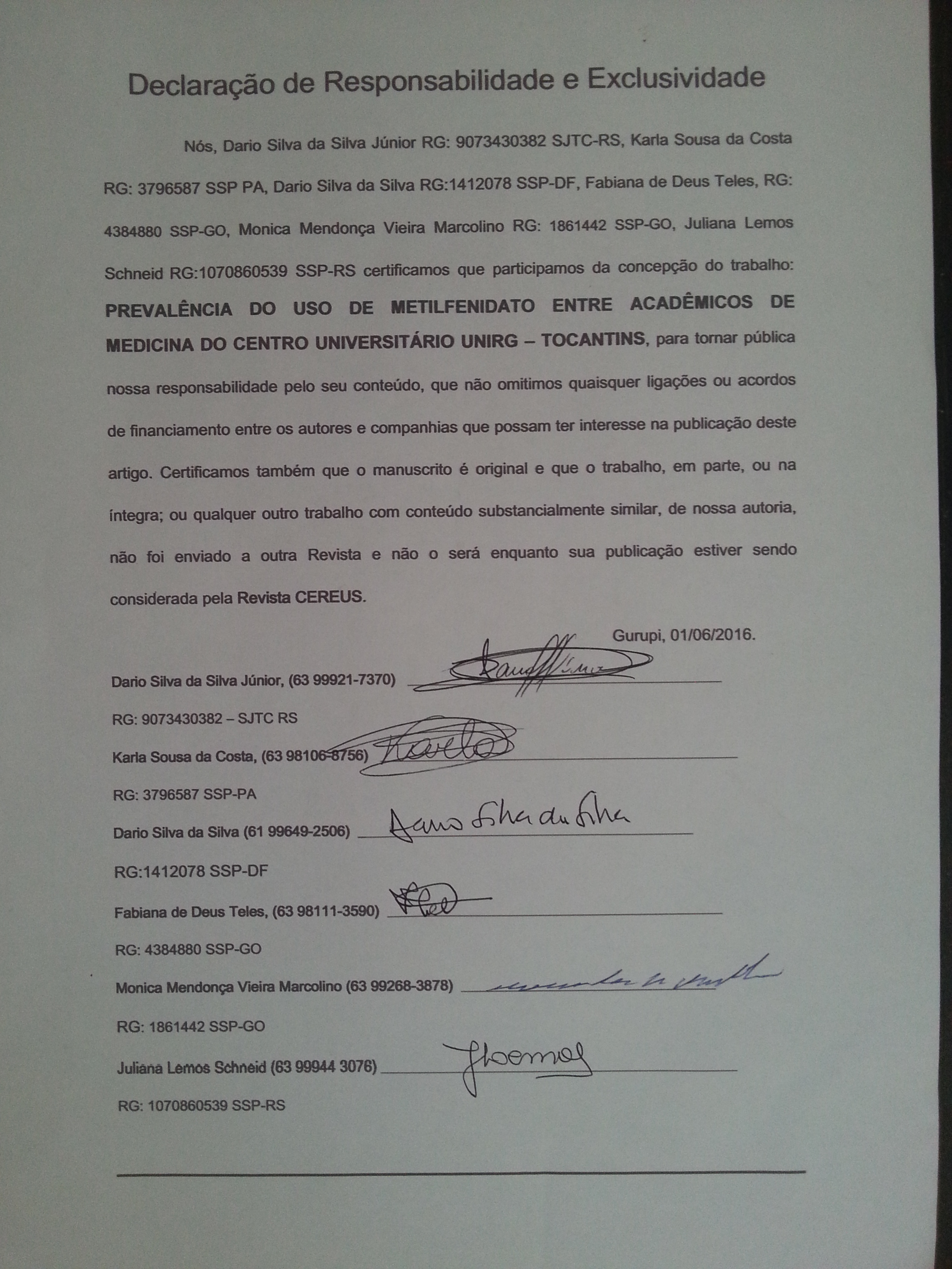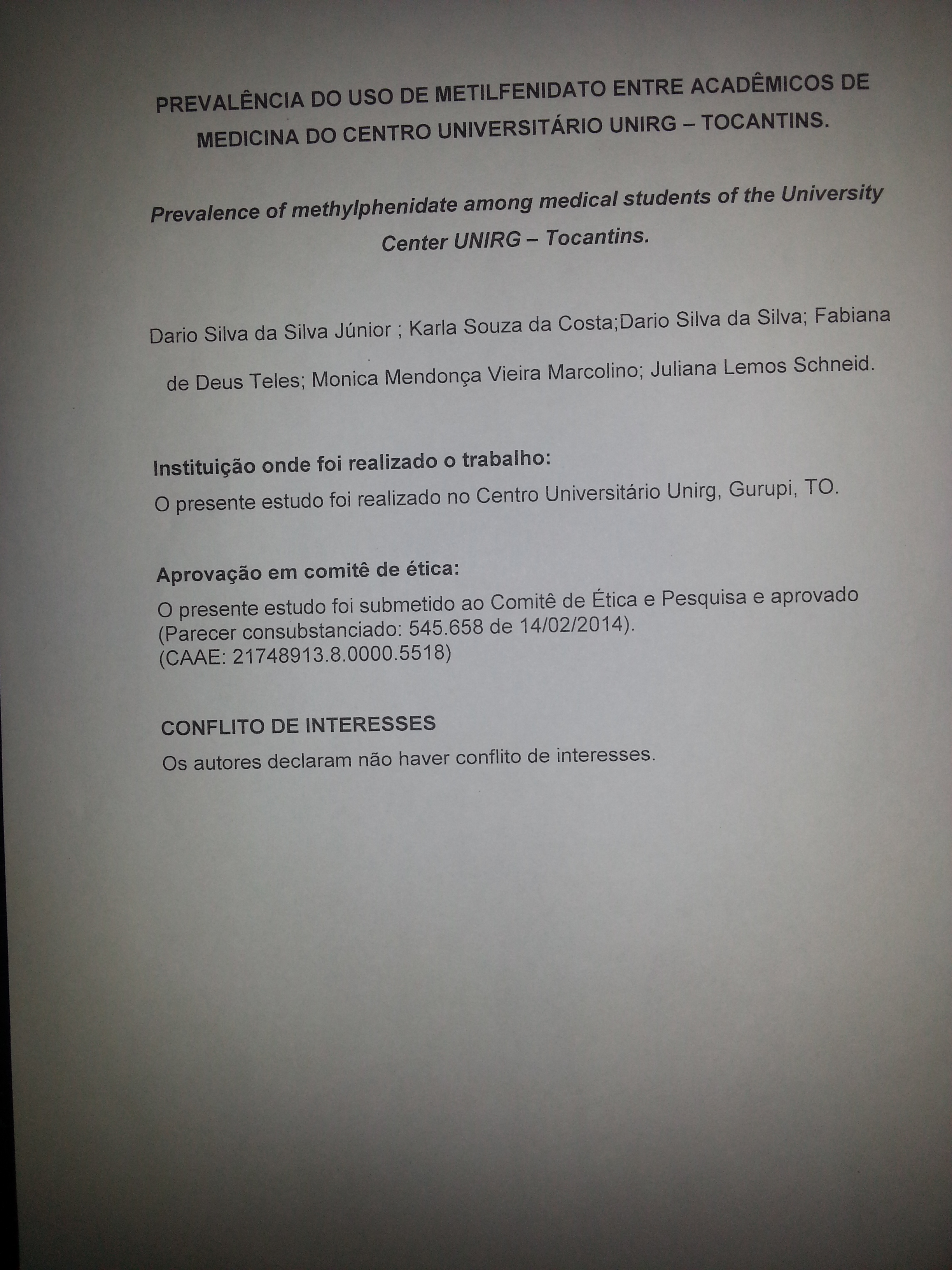 PREVALÊNCIA DO USO DE METILFENIDATO ENTRE ACADÊMICOS DE MEDICINA DO CENTRO UNIVERSITÁRIO UNIRG – TOCANTINS.