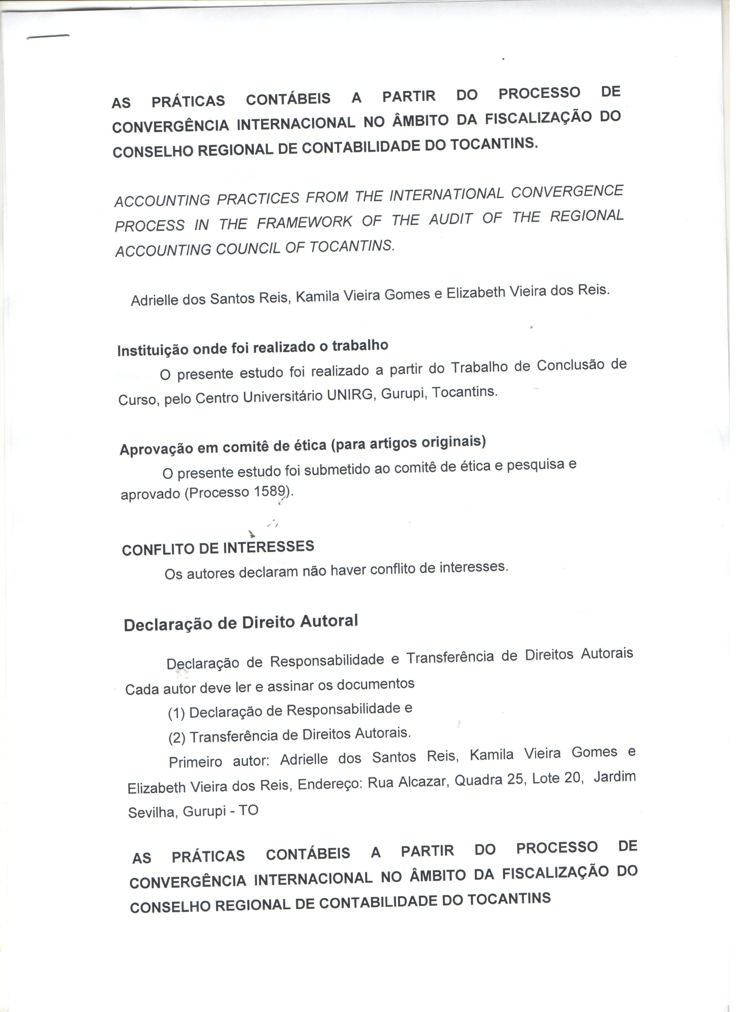 AS PRÁTICAS CONTÁBEIS A PARTIR DO PROCESSO DE CONVERGÊNCIA INTERNACIONAL NO ÂMBITO DA FISCALIZAÇÃO DO CONSELHO REGIONAL DE CONTABILIDADE DO TOCANTINS