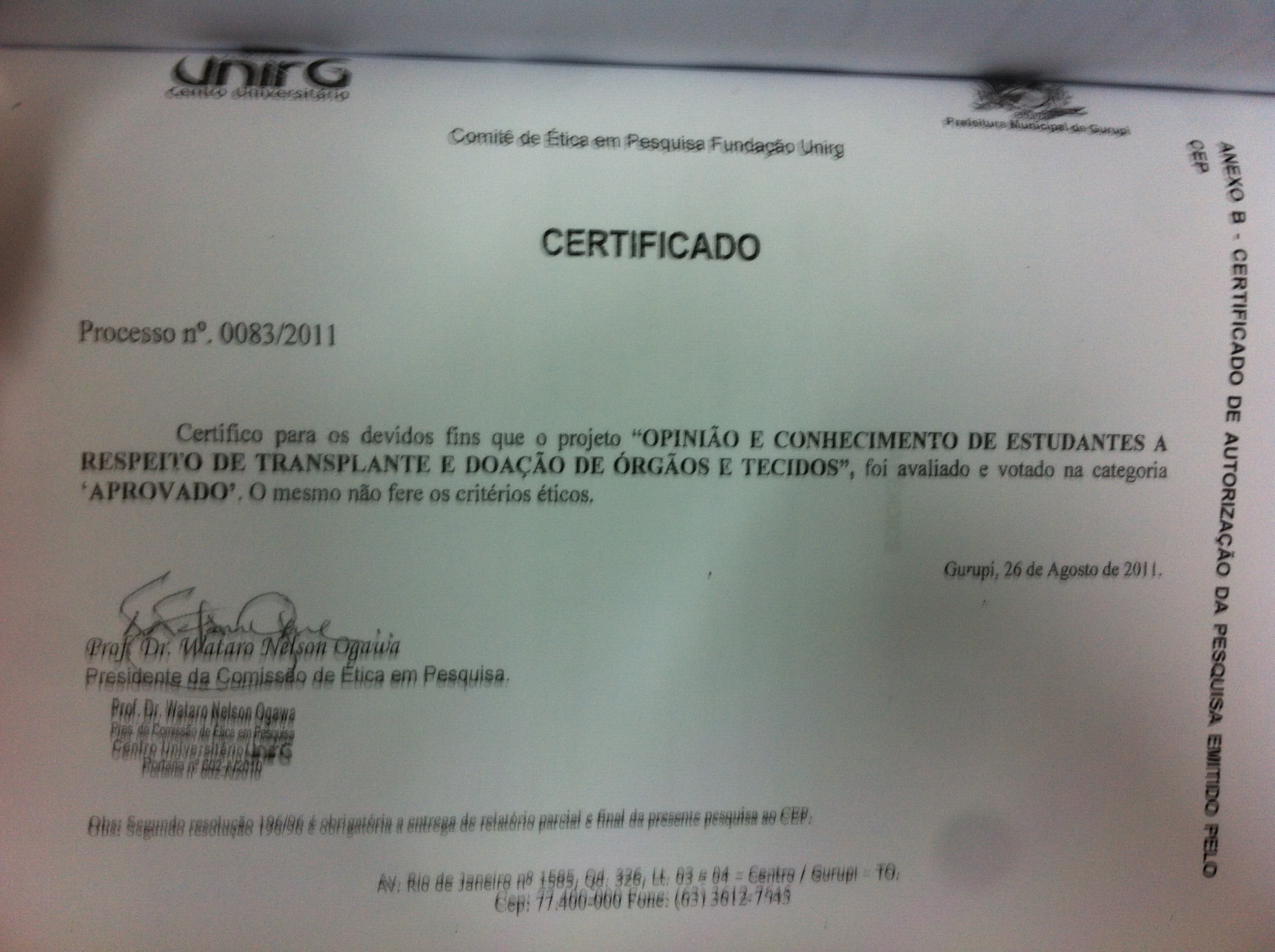 Conhecimento de estudantes de ensino médio da rede particular e pública a respeito de transplante e doação de órgãos e tecidos