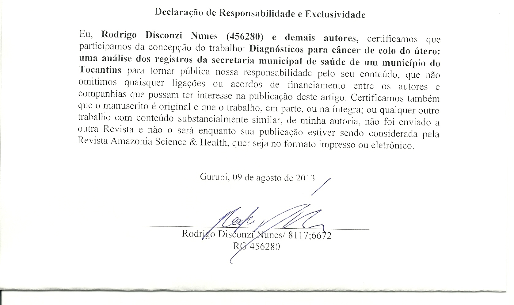 DIAGNÓSTICOS PARA CÂNCER DE COLO DO ÚTERO: UMA ANÁLISE DOS REGISTROS DA SECRETARIA MUNICIPAL DE SAÚDE DE UM MUNICIPIO DO TOCANTINS